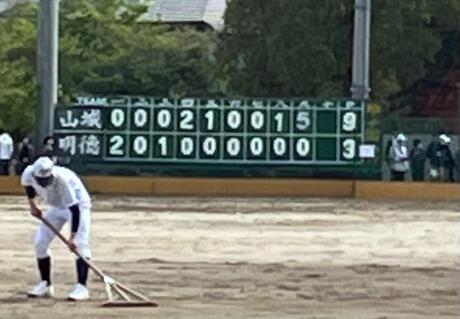 4月16日(日)堀川高校嵯峨野グランドで 1次戦1回戦 vs 京都明徳高校が行われ、9対3で勝利しました。