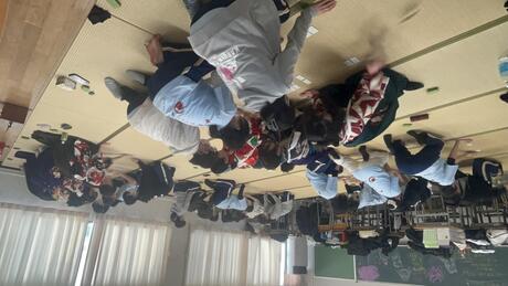 おそろいのデザインで、ベースの色に学年の個性が出る仕上がりです。