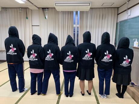 また、今年度は生徒発案により競技かるた部オリジナルパーカーを作成しました。