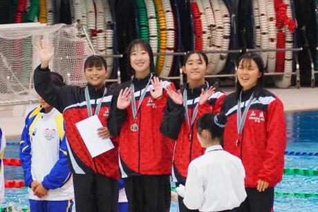 個人では、男子100m背泳ぎ3位をはじめ、女子100m平泳ぎでは1~3位になるなど、優秀な成績を修めました。