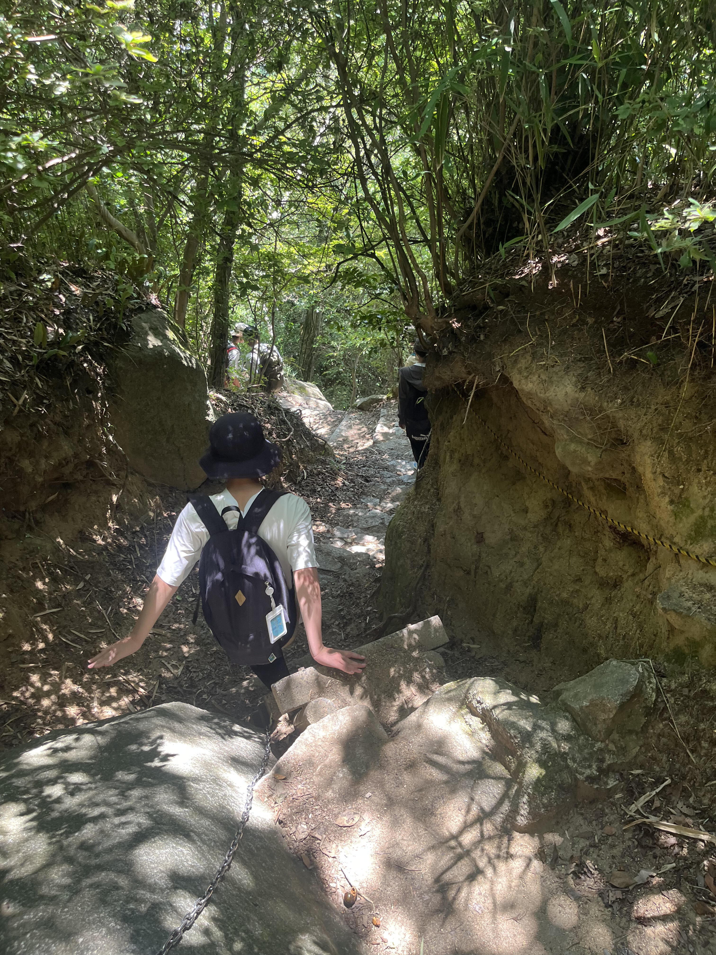 登っていくと、先ほどまでの滝のような汗はだんだんと冷え、少し寒さを感じる程の気温となりました。生徒たちは替えのTシャツや上着を羽織るなどして、気温に合わせてそれぞれが行動できたと思います。