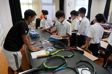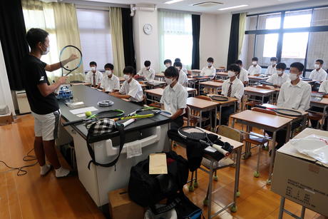 JRSA日本ラケットストリンガーズ協会認定ストリンガーの荒木良平さんをお招きし,ストリングの張り替えの講習をしていただきました。ガットの種類とその特性,ラケットのチューンナップについて詳しく学ぶことができました。