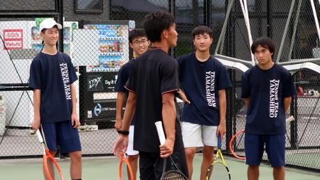 先日とは逆に,LYNX Tennis Academy の選手に来校していただき,練習試合を行いました。結果は山城高校の惨敗でしたが,ジュニア選手の技術の高さだけでなく意識の高さやコート内外での振る舞いなど学ぶことの多い1日になりました。