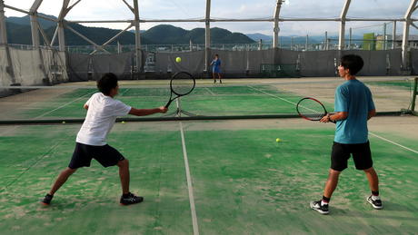 7月28日(木)から7月30日(土)の3日間、滋賀県高島市で夏合宿を実施しました。今年度の合宿は、立命館守山高等学校テニス部と合同で行いました。立命館守山高等学校の選手たちは、高等学校校進学以前からテニスをしている選手が多いため、技術面、戦術面においてレベルが高く、彼らと一緒に練習することは、本校の選手たちにとって非常に貴重な経験となりました。