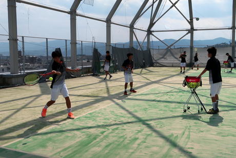 夜間照明もあり,日没の早い冬期もオンコートで練習できます。
