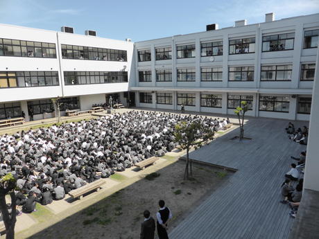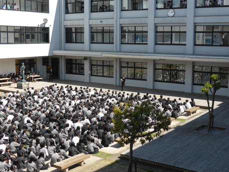 令和元年5月8日、中庭で生徒会選挙が行われました。各役職について立候補者の演説及び応援演説が行われ、候補者の前年度からの活躍や様々な抱負が紹介されました。演説が終わると、全校生徒による投票が行われました。