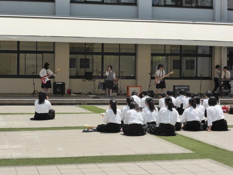 令和元年6月5日、昼休みに中庭で軽音部のライブが行われました。