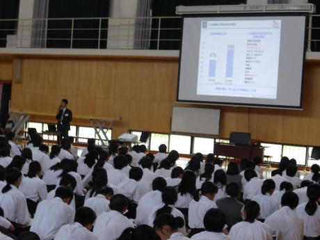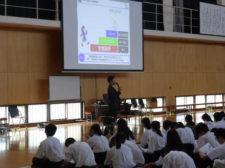 6月5日(水)LHRの時間にベネッセより文理選択に関する進路説明会を実施しました。これからの自分の将来を見据え真剣に耳を傾け、メモを取る生徒もいました。また、文理選択や今後の進路について考えたことをClassiに記入して、ポートフォリオとして残していきます。