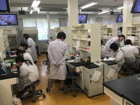 令和元年7月25日、2年7・8組の生徒が京都産業大学へ行き、紫野高校の生徒たちと合同で高大連携授業を受けました。生徒たちは、「化学」「生物」「物理・情報」「数学」のうち、各自が希望した分野にグループとして分かれて講義や実験を体験しました。空き時間には大学内を散歩したり、食堂やテラスで昼食をとったりして、大学の雰囲気を体験しました。講義や実験の後に時間ができたグループは、担当してくださった教授の引率で、大学の施設を見学しました。この日の体験は、生徒たちにとって今後自分たちの進路を決めていくにあたって、貴重な材料になると思います。