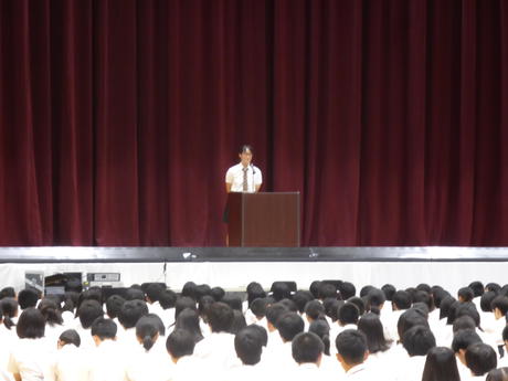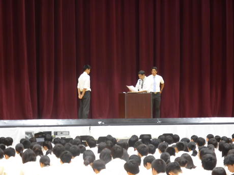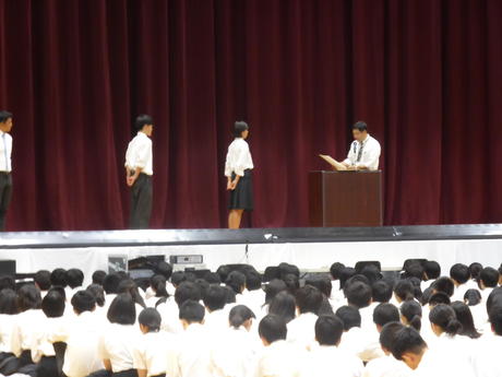 その後、夏季休業中の部活動の成果の報告及び表彰が行われました。