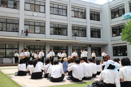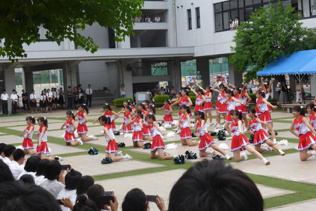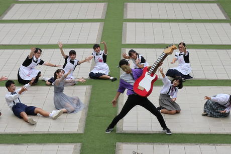 2年生は中庭でパフォーマンスを行いました。メインのダンスだけでなく、衣装や大道具などにも大変力が入っていました。