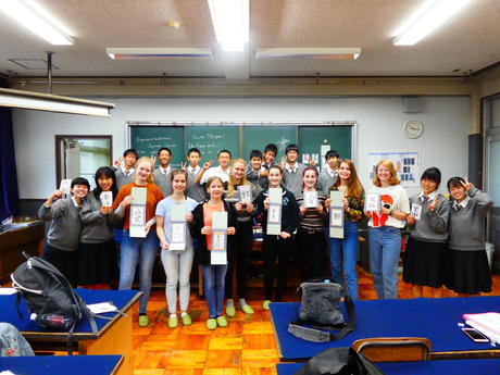 令和元年度10月29日(火)、ドイツのフィルダーベンデン校からの留学生が、日本の書道を体験しました。