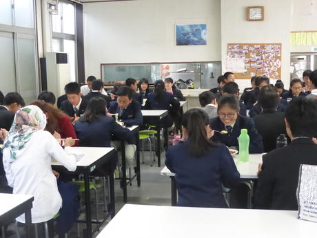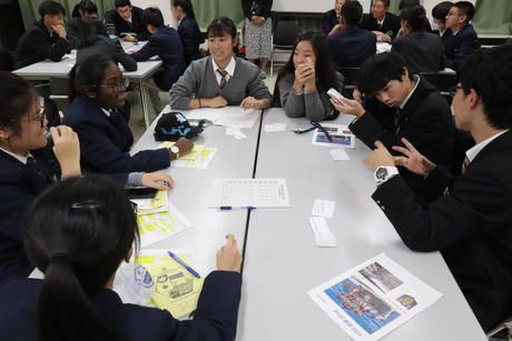 令和元年11月11日(月)、シンガポールのイーシュンタウンセカンダリースクールの生徒が来校し、1年文理総合科の生徒と交流を行いました。英語を使いながら、お互いの国について紹介しあったり、一緒に昼食を食べたりして親交を深めることができました。来年1月のシンガポール研修では、イーシュンタウンセカンダリースクールにて再度交流を行います。