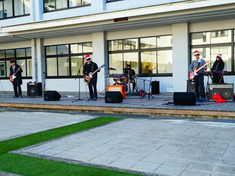 令和元年12月16日、昼休みに中庭で軽音部のクリスマスライブが行われました。