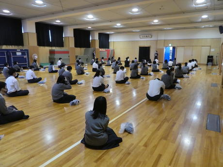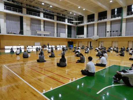 3年生はSHRの後、体育館と挌技場に分かれて、校長先生のお話や、進路の説明、人権に関する講話を聞きました。