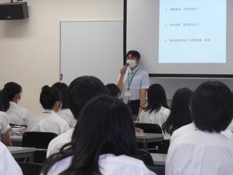 また、翌16日(木)には『第1回指定校ガイダンス』が、22日(水)には『第1回大学入学共通テストガイダンス』がそれぞれ行われ、参加者たちは配付資料にメモをとり、実に真摯な姿勢で話を聞いていました。三年生の諸君、受験に向けてがんばってください!