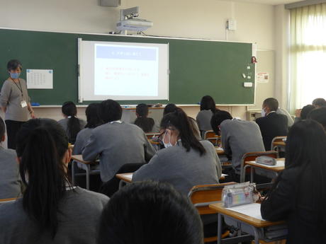 11月18日(水)6限に、2年生対象の分野別進路説明会を実施しました。国公立大学文系、私立大学文系、国公立・私立大学理系、看護系専門学校、看護系以外の専門学校の5分野に分かれて、入試の流れや2年生のこの時期にしておくことなどを進路の先生や外部講師から説明していただきました。今年はオープンキャンパスへの参加もできず、大学選びに苦戦する生徒も多かったと思います。生徒たちはどの分野の説明においても、真剣にメモを取りながら聞いていました。