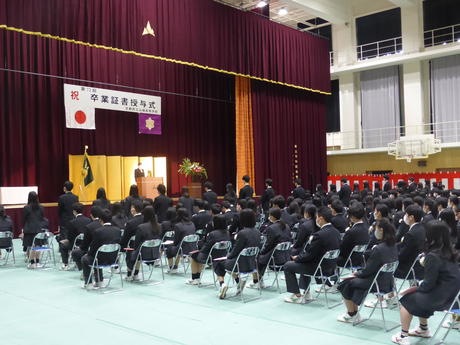 コロナウイルス感染拡大防止の観点より、本年度の式典は、卒業生と在校生代表者1名、教職員のみで実施いたしました。御出席に関しまして、保護者の皆様には、御理解御協力いただき誠にありがとうございました。
