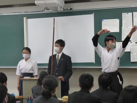 4月13日(火)、新入生に向けてクラブ紹介を実施しました。今回は新型コロナウイルス感染防止の観点から従来の形式を変更し、各クラブ3人以内の代表者が持ち時間2分以内で各HRを回って説明するという形で実施しました。各クラブの代表者は限られた時間を効果的に使って発表を行っていました。