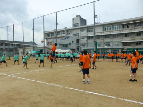 令和3年7月12日(月)、1プレーごとのボールの消毒など新型コロナウイルス感染防止対策を講じた上で球技大会を行いました。種目は3学年ともバレーボールで、第1・第2学年はグラウンドで、第3学年は体育館で競技を行いました。生徒はルールを守った上で団結し、練習の成果を発揮しました。悪天候により第1・第2学年の競技は決勝を目前にして中止となってしまいましたが、行事に全力で取り組む山城生らしさがうかがえる大会でした。