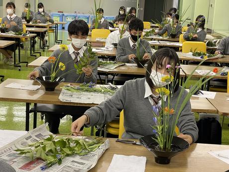 令和3年10月23日(土)、第1学年文理総合科の生徒が伝統文化事業に参加しました。午前は市内フィールドワークを行い、有名な庭園や仏閣をはじめ、何気ない川沿いの風景や町並みに潜む京都の歴史について生徒たちは学ぶことができました。午後からはいけばなの発祥地六角堂を訪れ、生徒たちは華道にまつわる歴史や心得についての講義を受けた上で"自由花"のいけばな体験を行いました。生徒の知的好奇心と創造力が刺激された一日となりました。