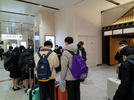 1月24日(月)予定通り京都駅に集合しました。全員元気です。新幹線に乗り込み、現在鹿児島に向かっています。