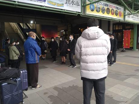 1月27日(木)午前中まで民泊先の家庭で過ごし、正午から離村式を行いました。 生徒たちは2泊お世話になった方々にお別れと感謝の言葉を述べ、出水を後にしました。 これから京都に戻ります。