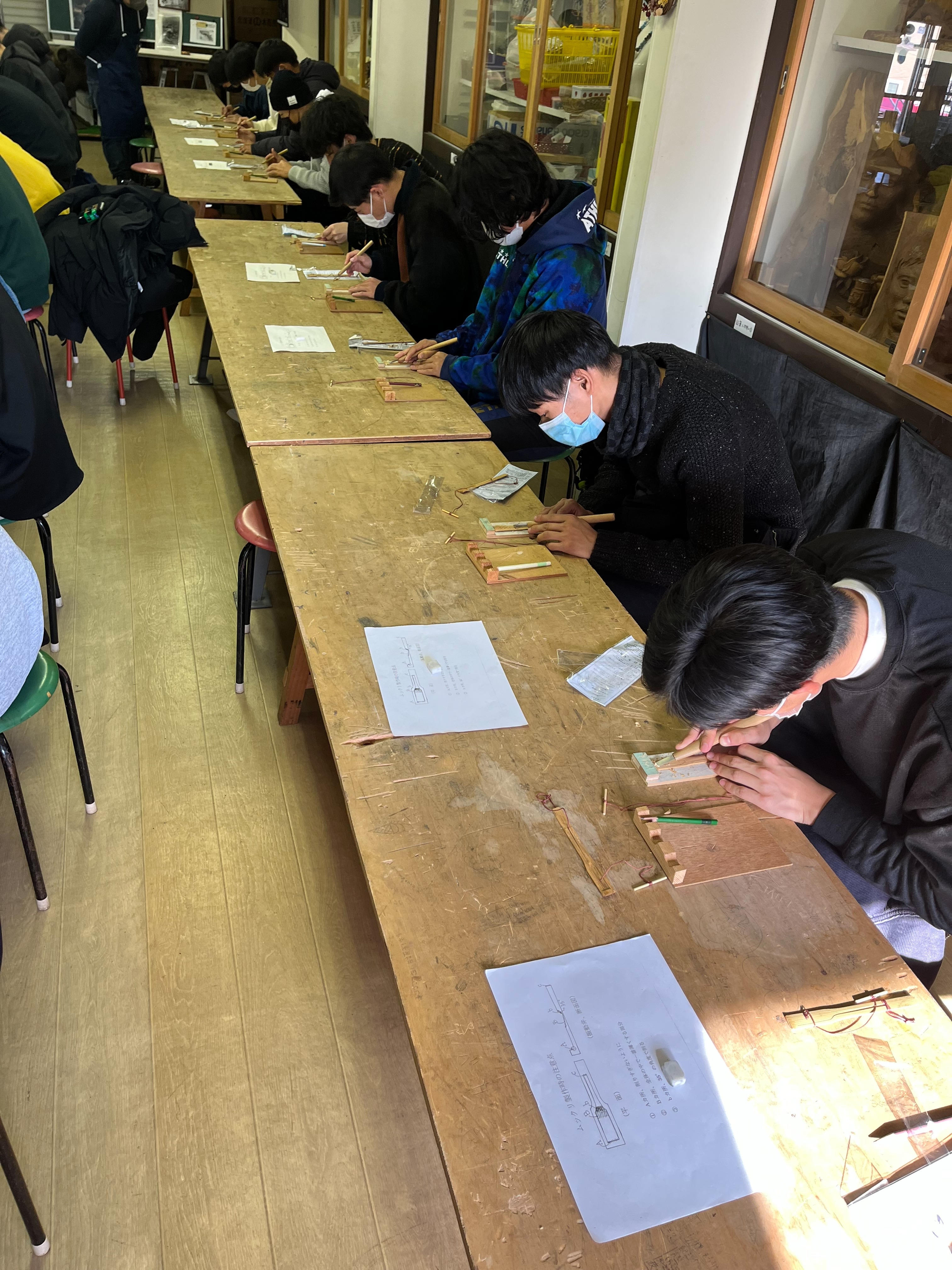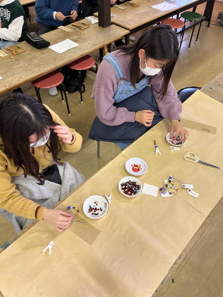 1枚目は白い恋人パークでのお菓子作り体験です。 2枚目はカーリングの様子です。 3枚目は、アイヌ民芸手作り体験のうち、アイヌの楽器「ムックリ」を作成しているところです。 4枚目はアイヌのアクセサリー「タマサイ」を作成しています。