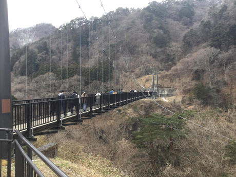 つくば市へ行く前に、鬼怒川温泉にある鬼怒盾岩大吊橋を見学しました。 揺れる吊橋にドキドキしながら、全員で渓谷美を堪能しました。