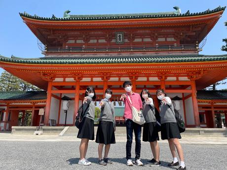 各班に分かれて自分たちでルートを計画し、平安神宮や東寺、八坂神社などの京都市の名所を訪れ探求活動を行いました。