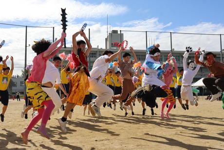 第1学年はそれぞれの教室を飾り付けして、各クラスで作成した動画を上映し、第2,3学年は動画上映に加えて、グラウンドでパフォーマンスを披露しました。