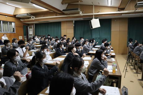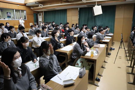令和4年10月27日(木)の6,7限に第2学年の生徒を対象に聴覚障害アッセンブリー(手話学習会)を行いました。京都府立聾学校からお招きした講師の先生から多くの手話を教えていただき、生徒たちは手話を使って楽しそうにコミュニケーションをとっていました。また、単に手話を学ぶだけでなく、「聴力に困難を抱える人たちとどのように接していくべきか」を考えるいいきっかけになりました。