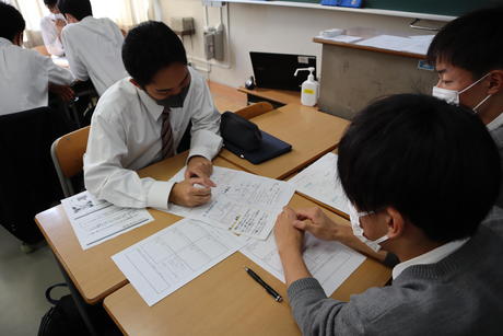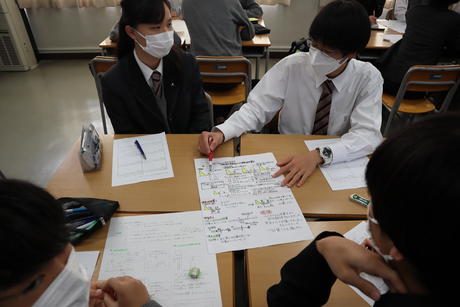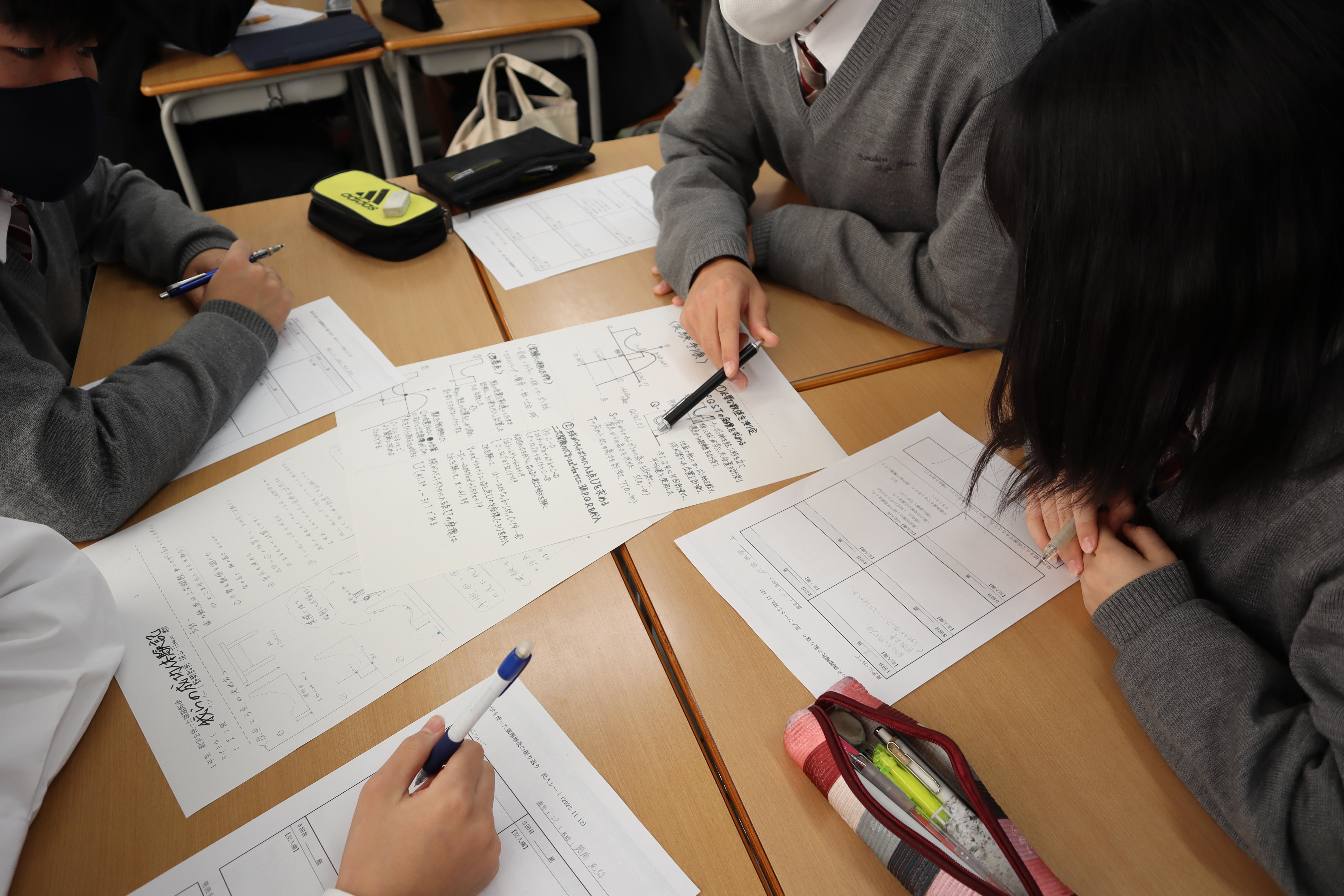 10月22日(土)に行われた第1回目は、発射台から鉄球を転がし、床に置いたペットボトルの中に入れる課題解決に取り組みました。今回は課題の成功率を高めるためのより良い方法を考察し、レポートにまとめてクラス内で発表会を開催しました。発表では、話の要点を絞ったり、具体的な例を交えたりするなど聞き手の反応に気を配りながら取り組む様子が見られました。その後、全体で行った振り返りでは、課題の成功率を高めるために「正確さ」と「効率」の両方を追求していくことが大切だと学びました。講義の最後には、葛城先生から「数学を使って自分の考えを論理的にまとめたり、発表・議論したりすることが今後の社会で求められている力であるので、普段の授業を通して育んでほしい」とまとめがありました。