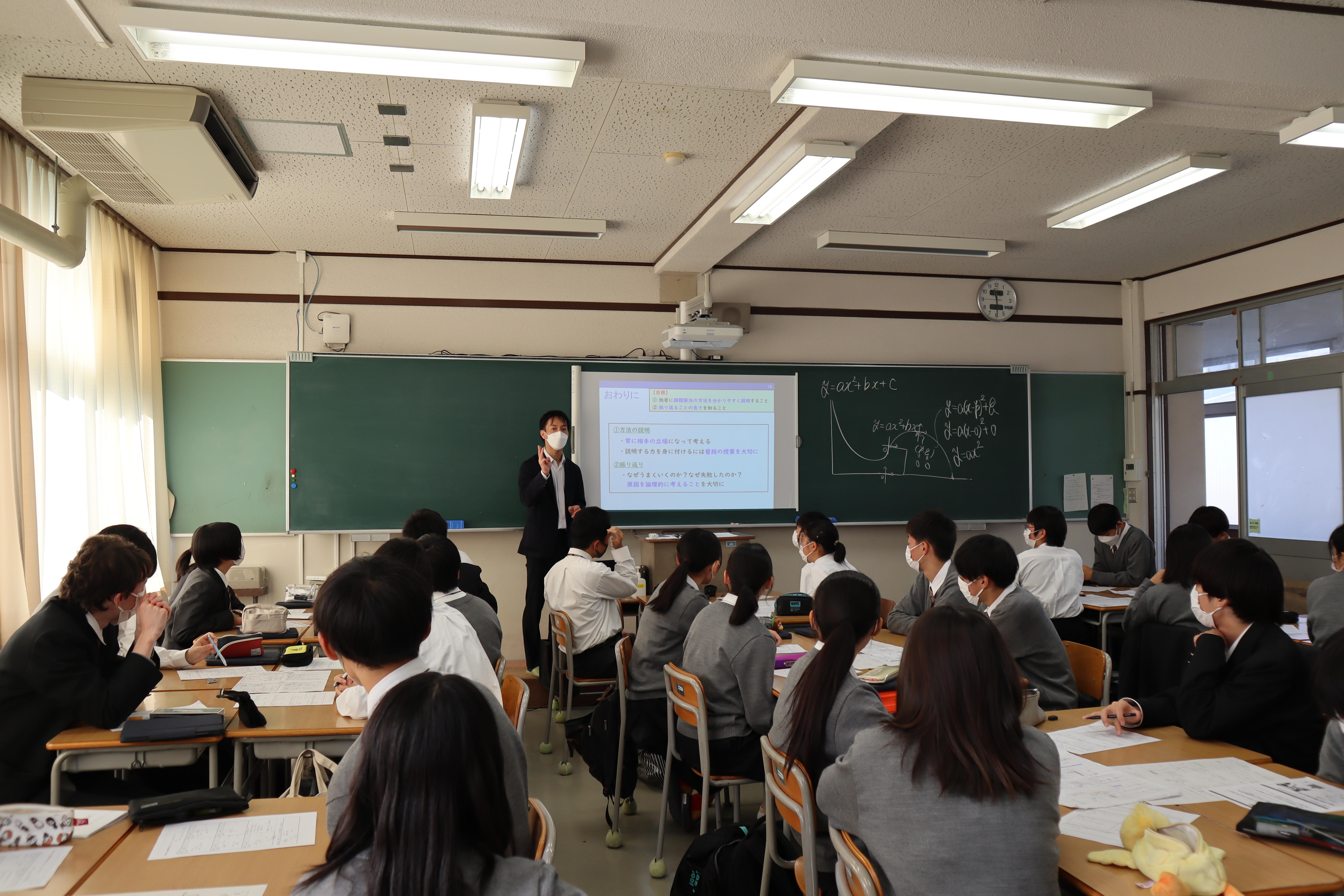 令和4年11月12日(土)奈良学園大学人間教育学部の葛城元講師をお招きし、文理総合科の1年生を対象に「斜方投射を題材とした課題解決」というテーマで、2回目の特別講義を実施しました。