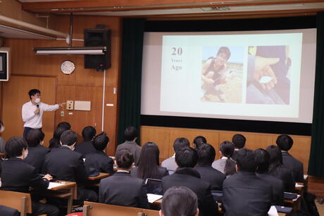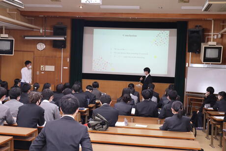 今回は、「デジタルプラットフォームと独占禁止法」というタイトルで台湾出身の研究者の方に講演いただきました。出身国や異文化コミュニケーションについてもわかりやすい英語で話していただき、生徒たちは興味津々で聴いていました。