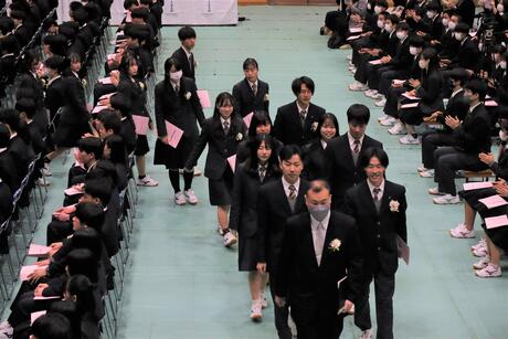 3月1日(水)、第75回卒業証書授与式を挙行いたしました。新型コロナウイルスの感染状況を鑑み、本年度の式典は、保護者の皆様にも御協力いただき、各御家庭につき一名の参加とさせていただきました。