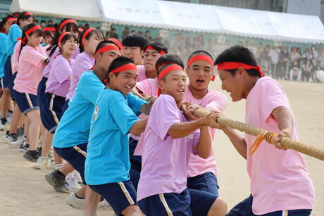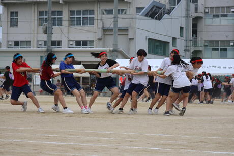 同じクラス、ブロックの仲間たちと協力し合いながら、生徒一人一人が精一杯競技に取り組んでいました。