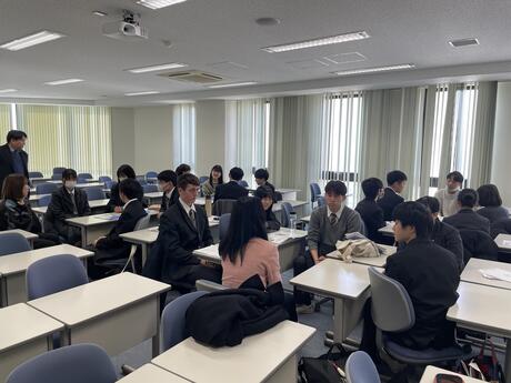 忽那教授の講義の後は、グループごとに忽那教授のゼミに所属する学生と交流をし、大学で過ごす日常生活や志望する進路の見つけ方・考え方、大学で進める専門的な学びの楽しさなどについて交流・意見交換をしました。