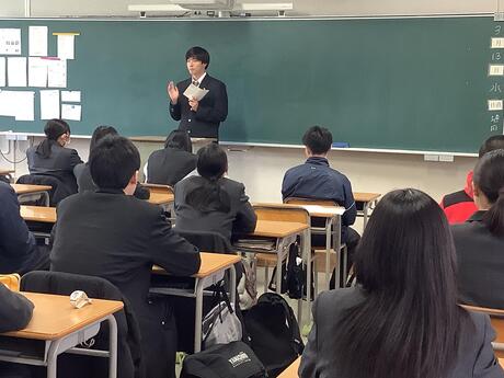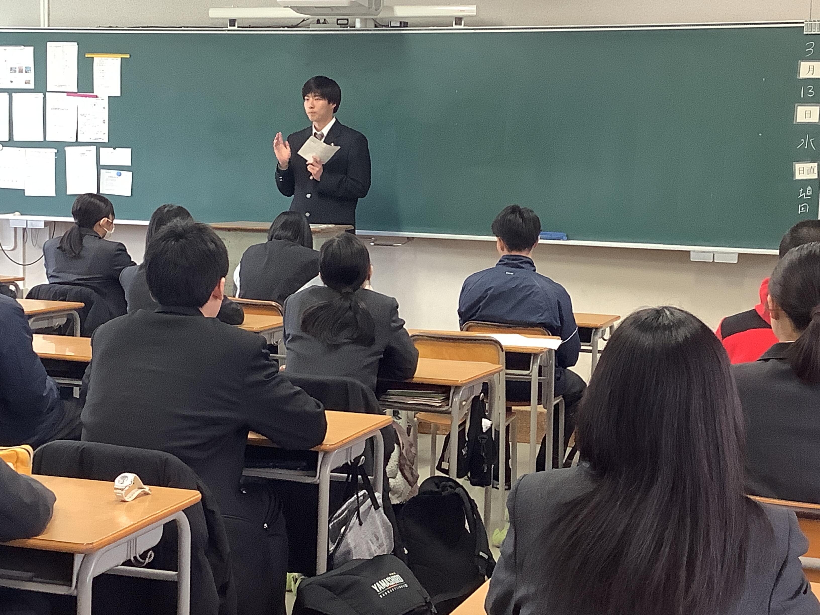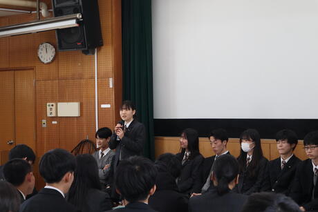 今年度卒業した3年生が、1・2年生に対して受験に向けた心構えやこれからの学校生活についての話をしました。