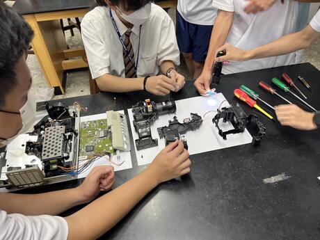 その後は、物理、地学、生物、数学、英語などの授業に別れ、体験を英語で行なっていました。
