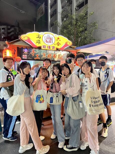 夕食後は、六合夜市へ向かい、今年6月まで本校に留学生に来ていた高雄高級中学校の学生たちと、グループで回っていました。