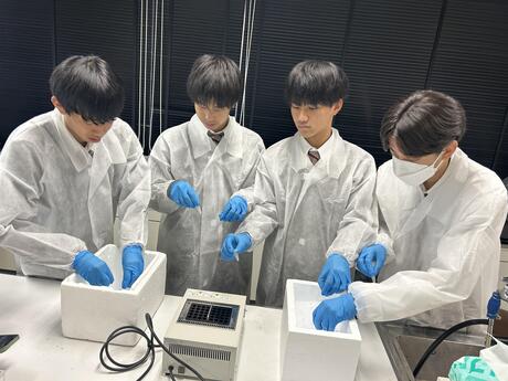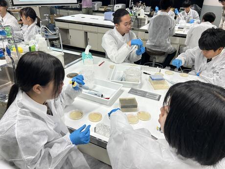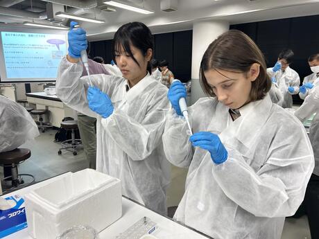 実験では、大腸菌に蛍光タンパク質の外来遺伝子を導入しました。初めて使うマイクロピペットに興味津々で、楽しく実験を行っていました。今回培養した大腸菌を、来週実際に観察します。
