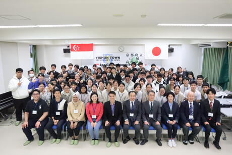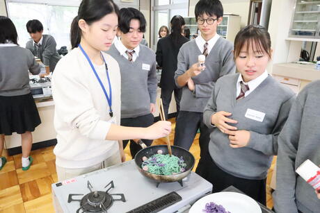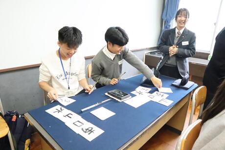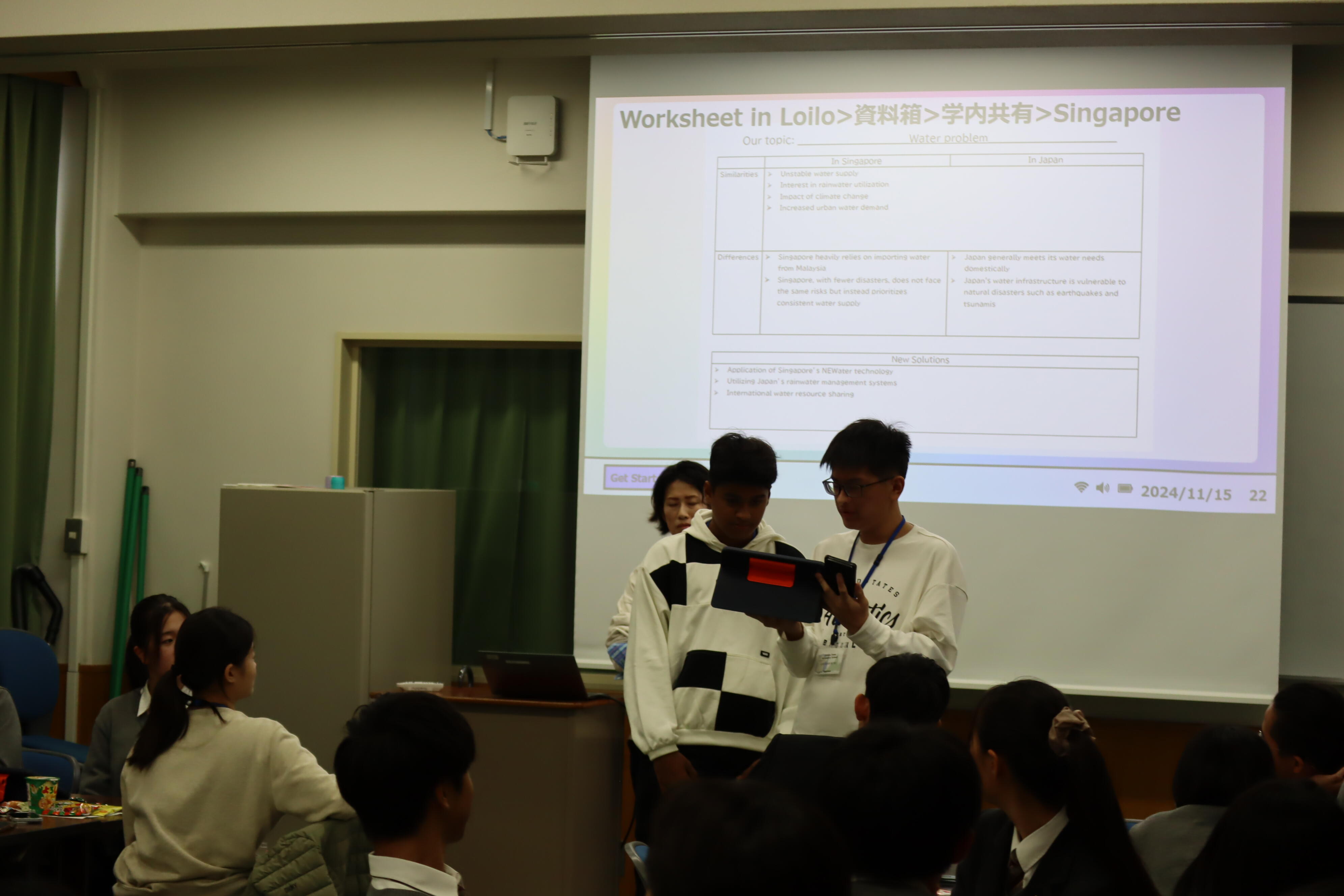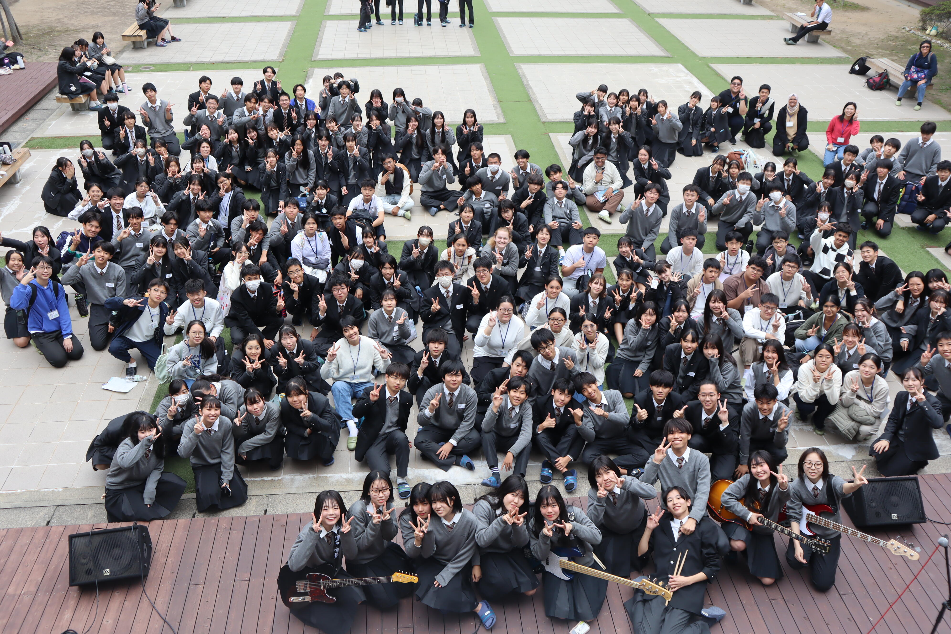 令和6年11月15日(金)にワールドワイドパイオニア育成プロジェクトの一環として、シンガーポールのイーシュンタウンセカンダリースクールから32名の生徒が来校し、国際交流を行いました。歓迎セレモニーの後、本校1年の文理総合科、2年の文理総合科・普通科の生徒と共に、書道体験や調理を交えた実験・グループ交流などを通して、親睦を深めました。また、お昼休みには本校の食堂で一緒に昼食をとり、軽音楽部による昼休み公演を楽しみました。