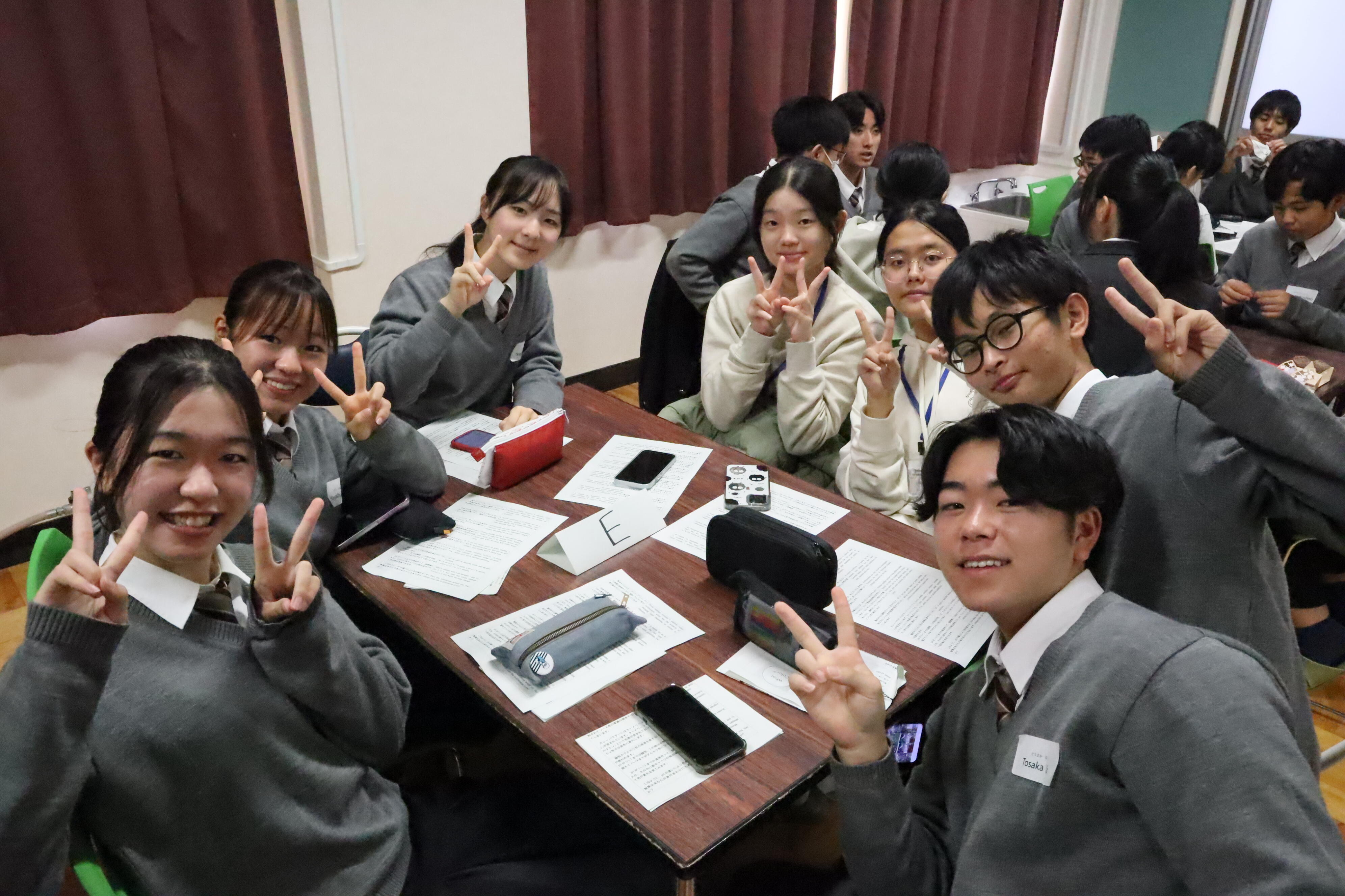 歓迎セレモニーのあと、第1学年の普通科・文理総合科の生徒と共に「日本と台湾の文化クイズ」や「日本の遊び体験(福笑い、神経衰弱、伝言ゲーム)」を通して、親睦を深めました。交流中はずっと「英語」を用いてコミュニケーションを取り合いました。